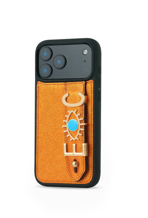 Gold Hiva Turuncu Harfli iPhone Deri Kılıf