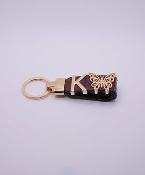 Harfli Parlak Kırmızı Kroko Deri Anahtarlık