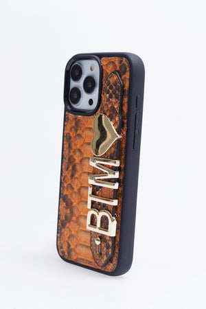 Harfli Piton Turuncu iPhone Deri Kılıf