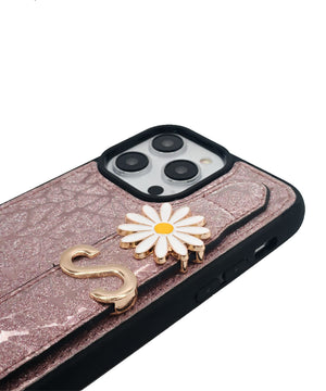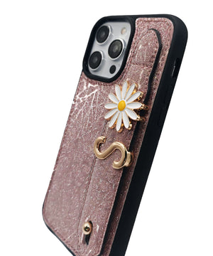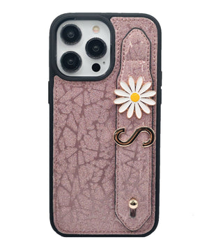 iPhone Harfli Sedefli Pembe Deri Kılıf