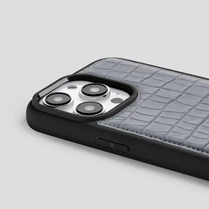 iPhone Kroko Gri Deri Kılıf