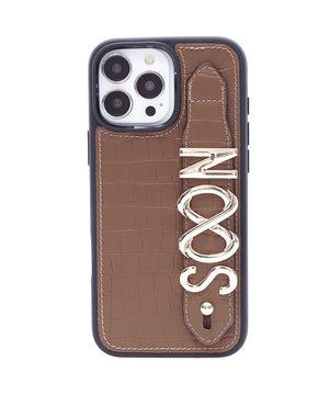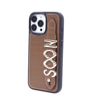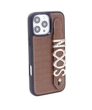 Kahverengi Harfli iPhone Kroko Deri Kılıf