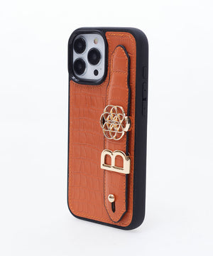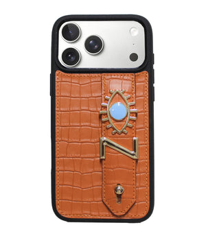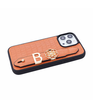 Turuncu Harfli iPhone Kroko Deri Kılıf