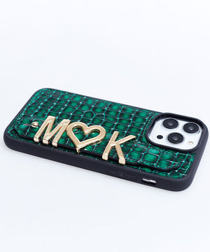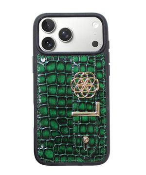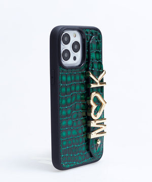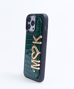 Yeşil Harfli iPhone Kroko Deri Kılıf